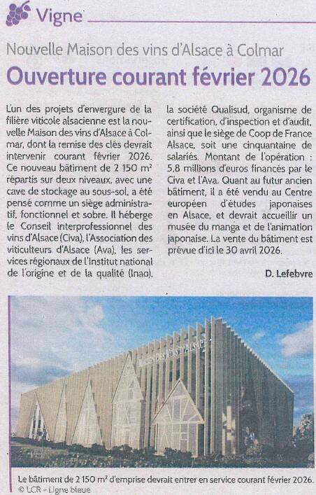 La société LCR nous a fait confiance en tant que partenaire du projet de construction de la "MAISON DES VINS D'ALSACE" à Colmar pour différents lots.